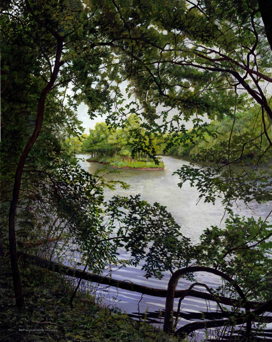 Here's another urban landscape painting focusing on Oklahoma City. This is from Martin Nature Park south of Memorial Road on the north side of town. An oasis now of bird and wildlife sanctuary, it was out in the country when first established and is now surrounded by exurbia (although within the expansive OKC city limits).